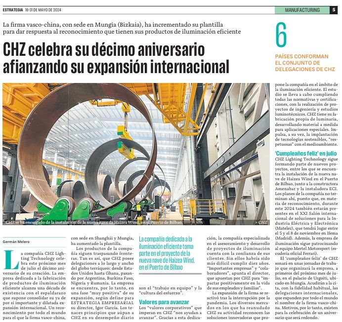 CHZ Lighting Technology vuelve a ser destacada en un reportaje del periódico de Estrategia Empresarial. En el se hace un  repaso a nuestros primeros 10 años de historia, entre otros temas. Si deseas conocer más detalles sobre la empresa, te invitamos a leer el artículo.